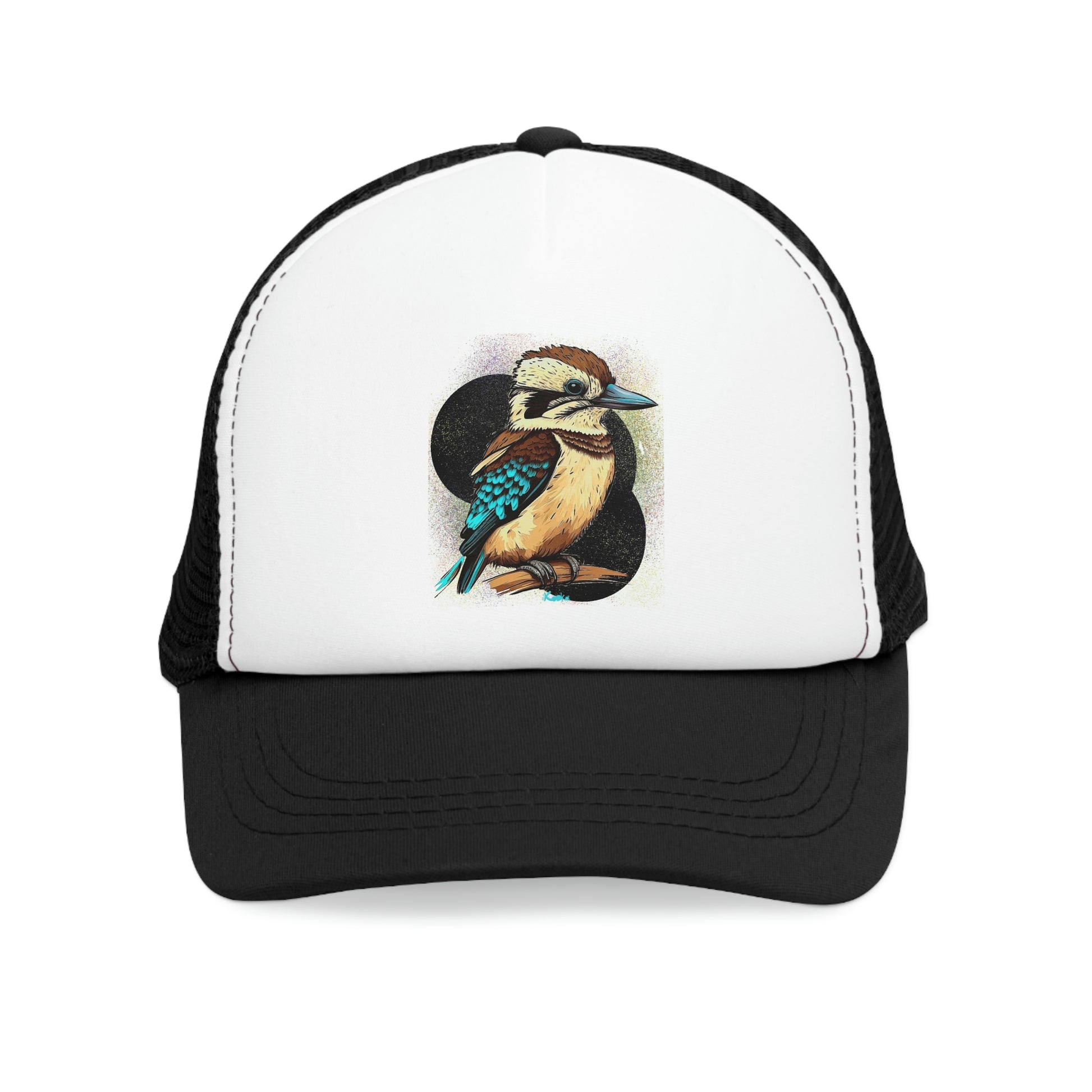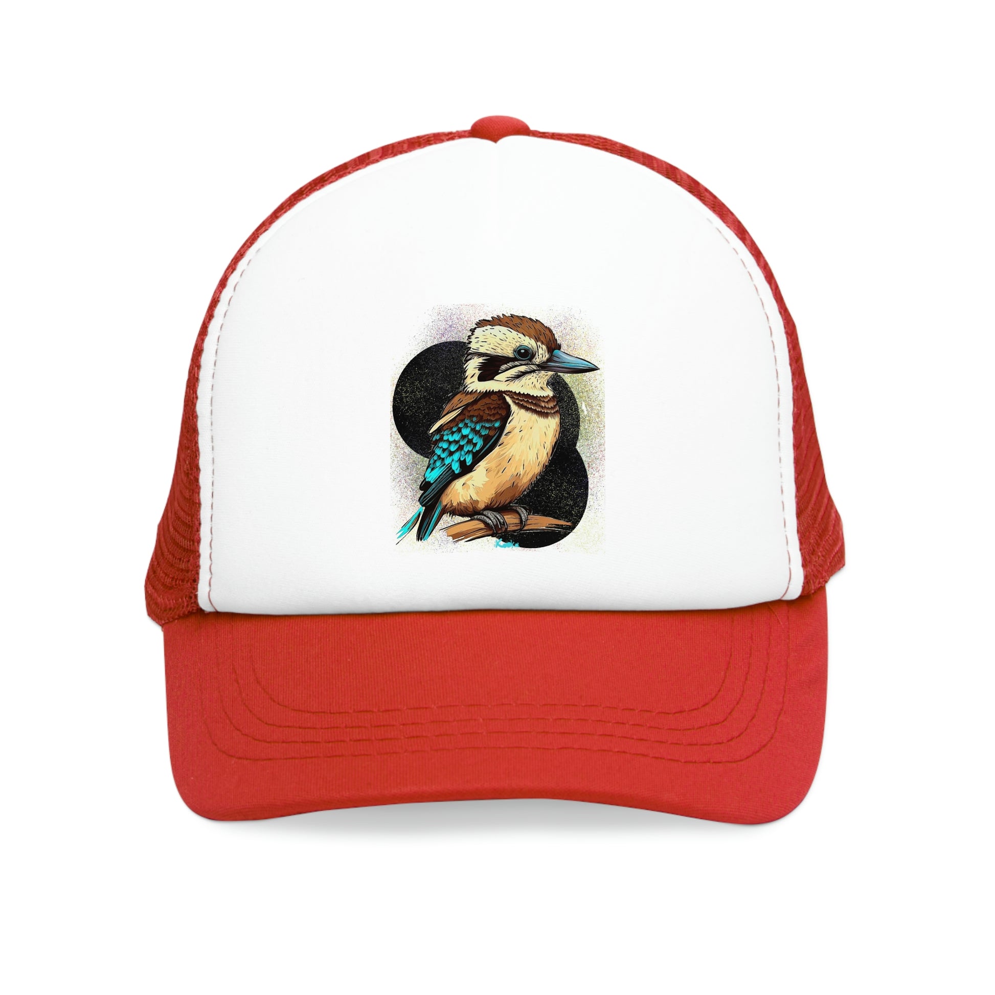 Our unisex mesh cap with a colorful kookaburra image is the perfect outdoor accessory. Made with high-quality materials, it offers both style and comfort. The breathable mesh panels and adjustable plastic snap closure provide a comfortable fit. The cap's vibrant image adds a pop of color to any casual outfit. Ideal for a day at the beach, hiking or a weekend stroll, this cap is a must-have for outdoor enthusiasts.
